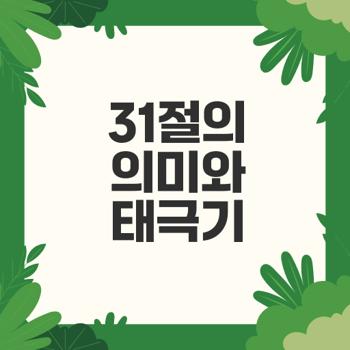 31절 태극기와 애국 심체험은 무엇인가 31절은 대한민국의 독립을 기념하는 날로, 태극기의 중요성을 되새기는 기회입니다. 이 글은 그 의미와 현대 사회에서의 애국 정신을 살펴봅니다. 목차 31절의 역사와 의미 독립운동과 31절의 역사 순국선열들의 희생 31절의 기념행사 태극기의 상징성과 의의 태극기가 지닌 의미 자유와 평화의 상징 국경일에 태극기 게양하기 태극기의 현재와 미래 .. 카테고리 없음 2025.03.02
